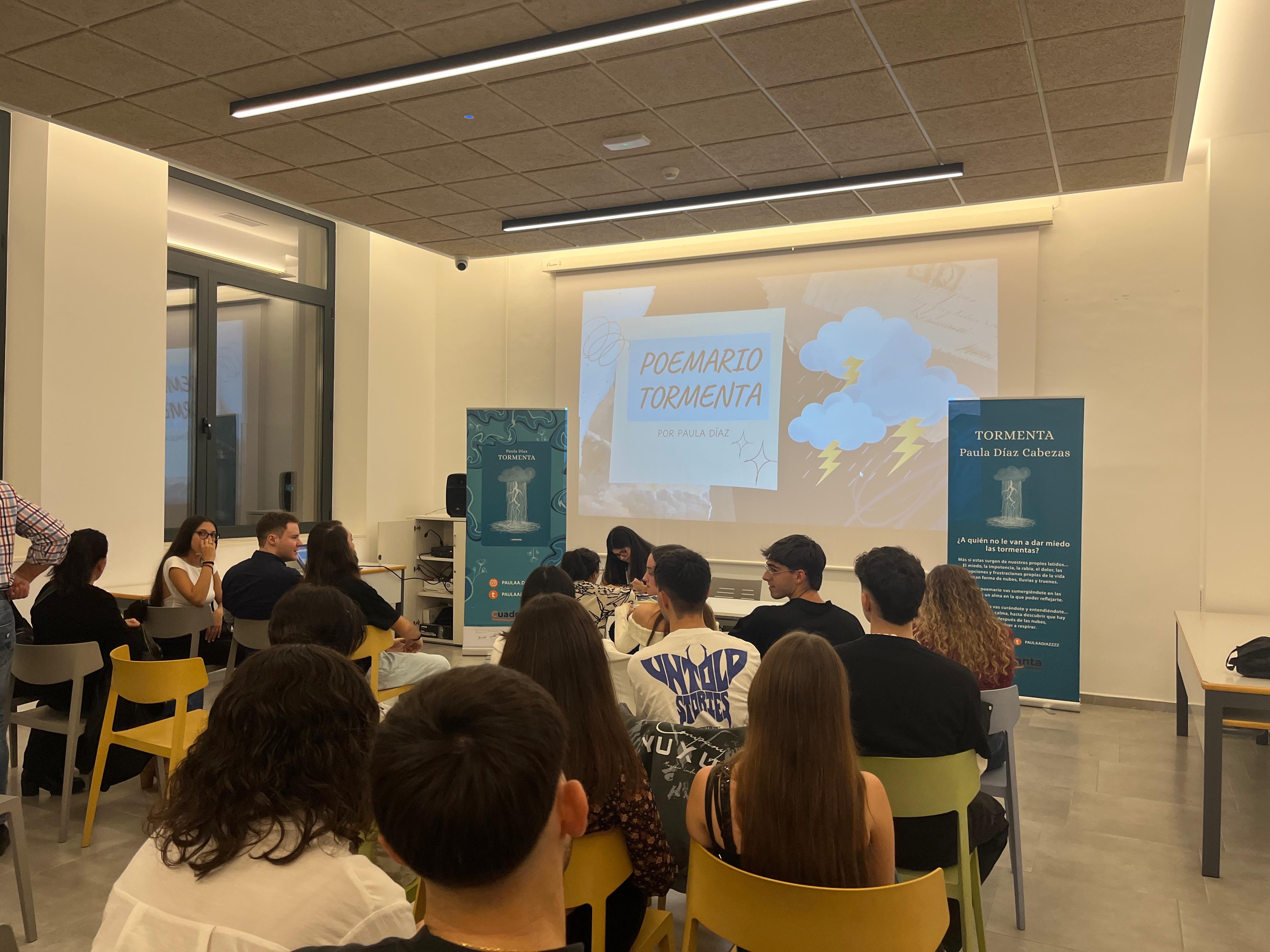 Aquest divendres 24, Paula Díaz ha compartit "Tormenta", en un acte al Centre Cervantes Jove. L’autora ha parlat de les seues experiències, oferit consells i ha llegit alguns poemes que han cautivat els assistents.