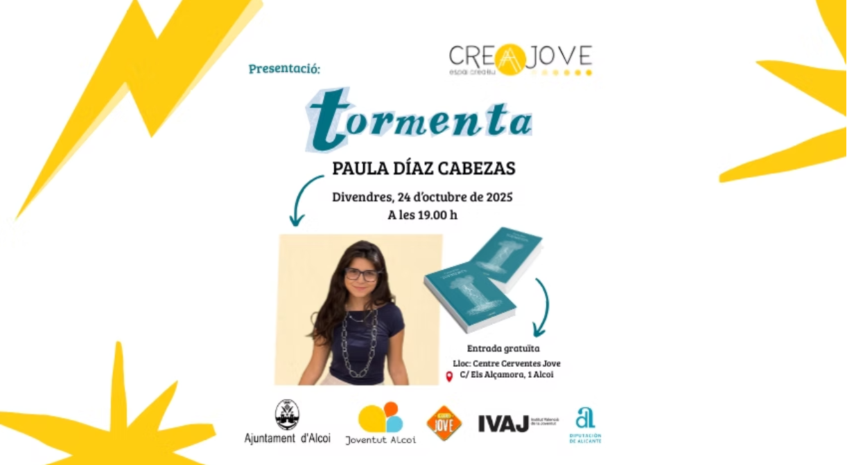 El Centre Cervantes Jove acull aquest divendres, 24 d’octubre, a les 19:00h, la presentació del llibre "Tormenta", la primera obra publicada de la jove alcoiana Paula Díaz Cabezas.