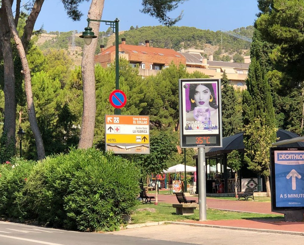 I la calor continuarà en els pròxims dies. Este dijous 14 de juliol, a les 10.30 del matí i com es pot vore en la fotografia, a Alcoi s'havia arribat ja als 35 graus, amb un ambient al carrer sufocant. I segons es pot vore en la web d'AVAMET, a tots els municipis on tenen estacions s'han superat ja els 28 graus a les 10 del matí, excepte en l'estació del cim del Menejador on marca 24 graus.