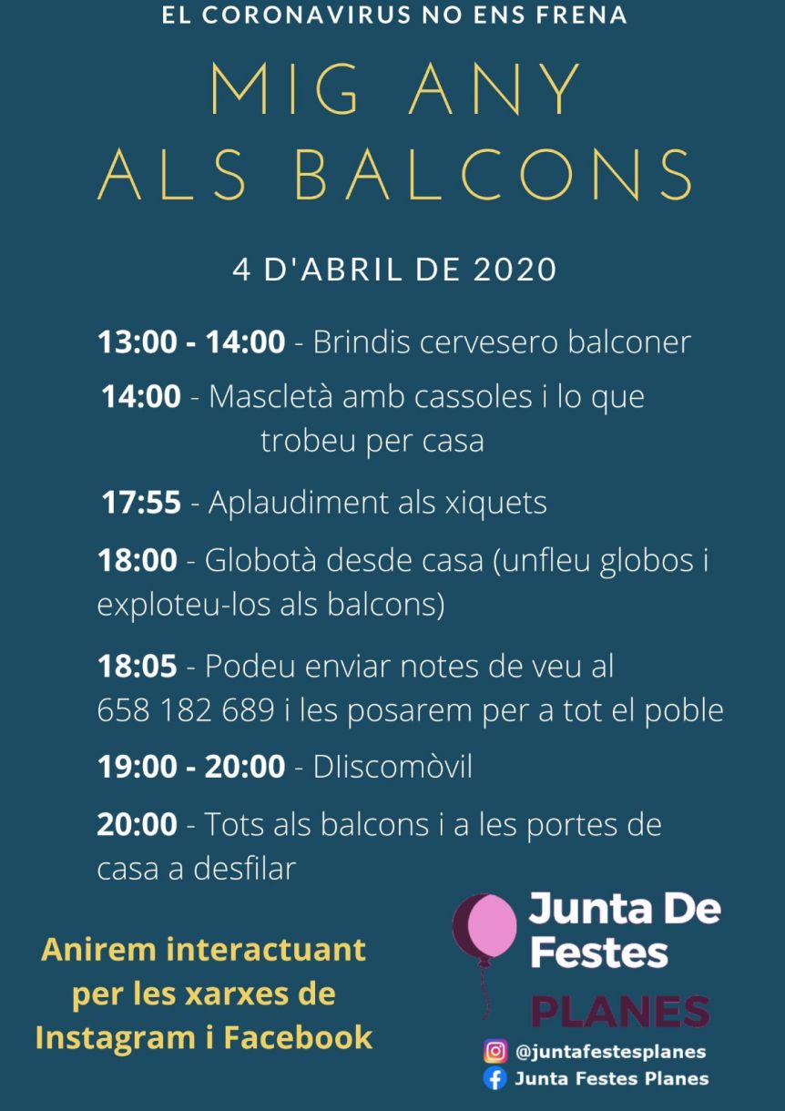 La Covid-19 no ha evitat que Planes vulga celebrar el seu Mig Any. La Junta de Festes de Planes ha creat un programa de festes adaptat a les circumstàncies actuals per a aquest dissabte 4 d'abril.