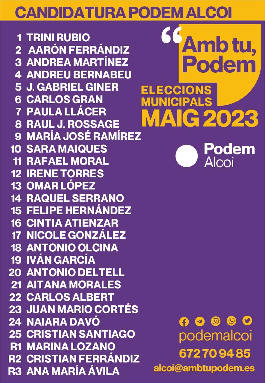 La llista de Podem Alcoi queda així: