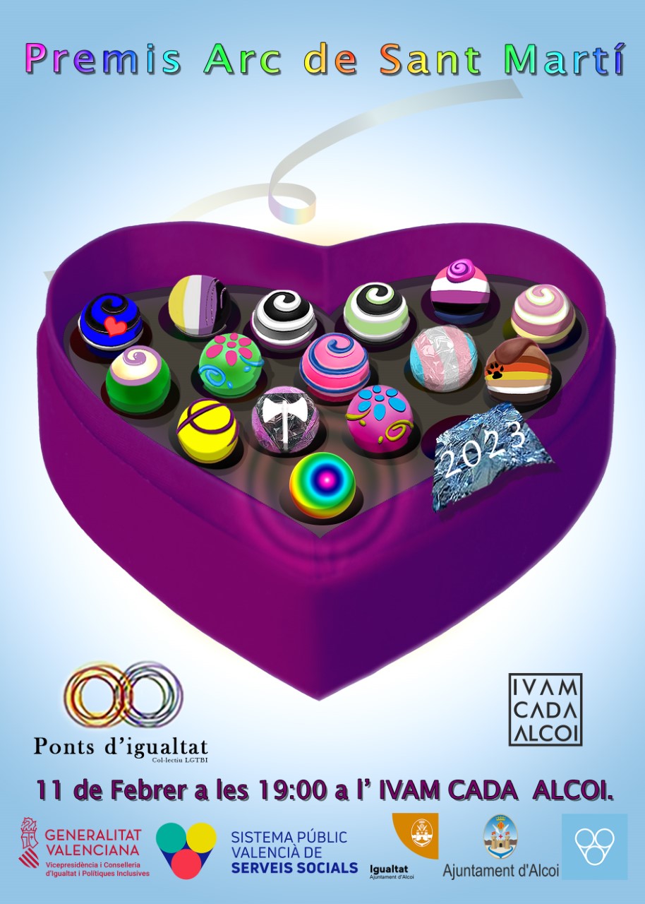 L'associació LGTBI alcoiana Ponts d'Igualtat, instaura els premis Arc de Sant Martí en reconeixement del treball d'institucions o associacions que "han treballat i col·laborat amb la fi donar visibilitat, denunciar i avançar cap a la no discriminació de les persones LGTBIQ+".