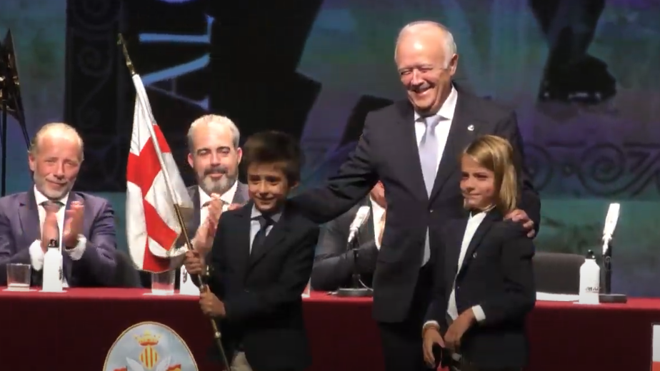 Nicolás Sánchez (Sant Jordiet 2023) entrega la bandera a Mauro Abellán (Sant Jordiet 2024)