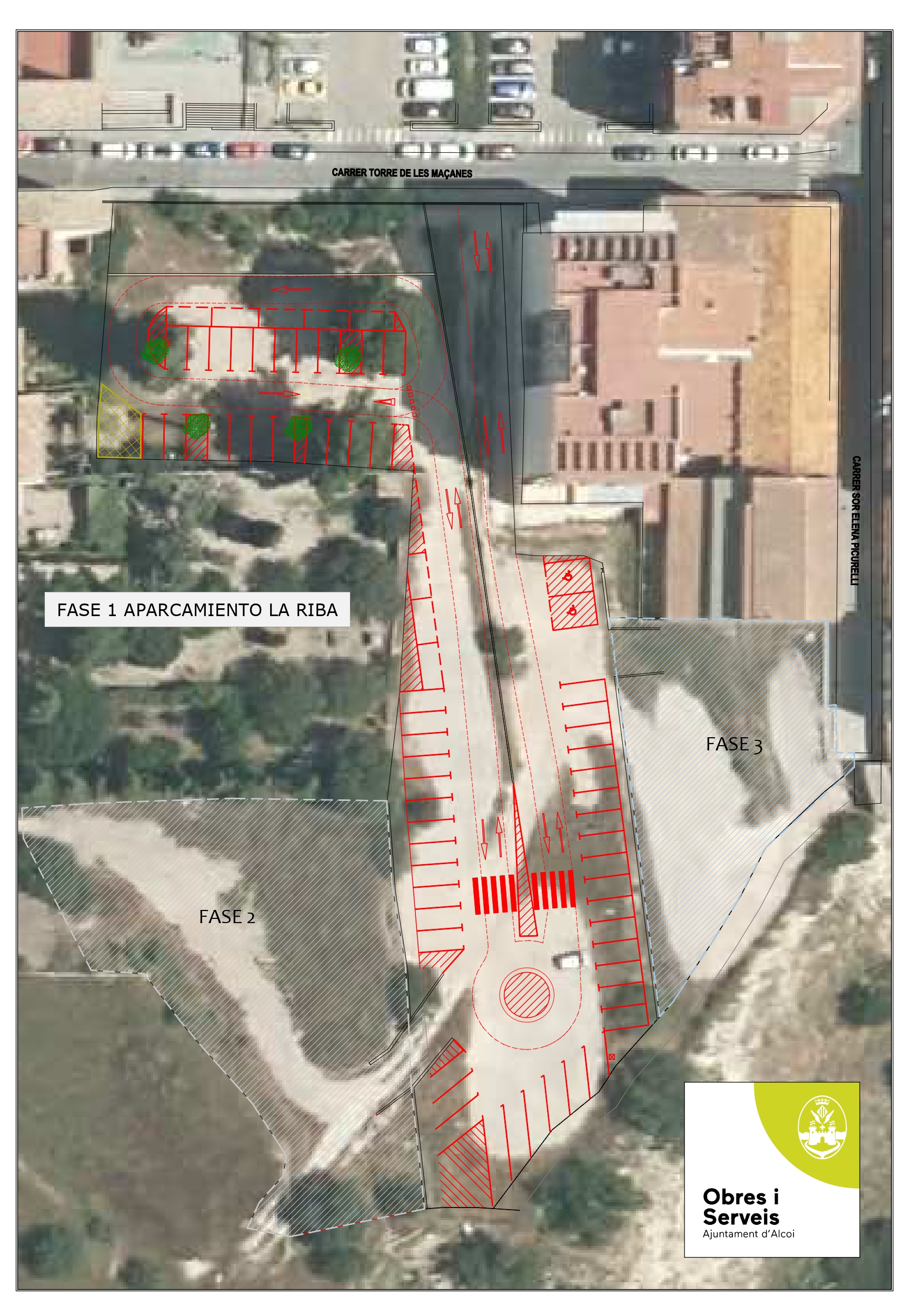 El Centre d'Alcoi sumarà al voltant de 200 places d'aparcament una vegada s'habiliten els terrenys de La Riba com a zona d'estacionament. La primera de les tres fases del projecte ja està planificada, la qual comprendrà entre 60 i 70 places.