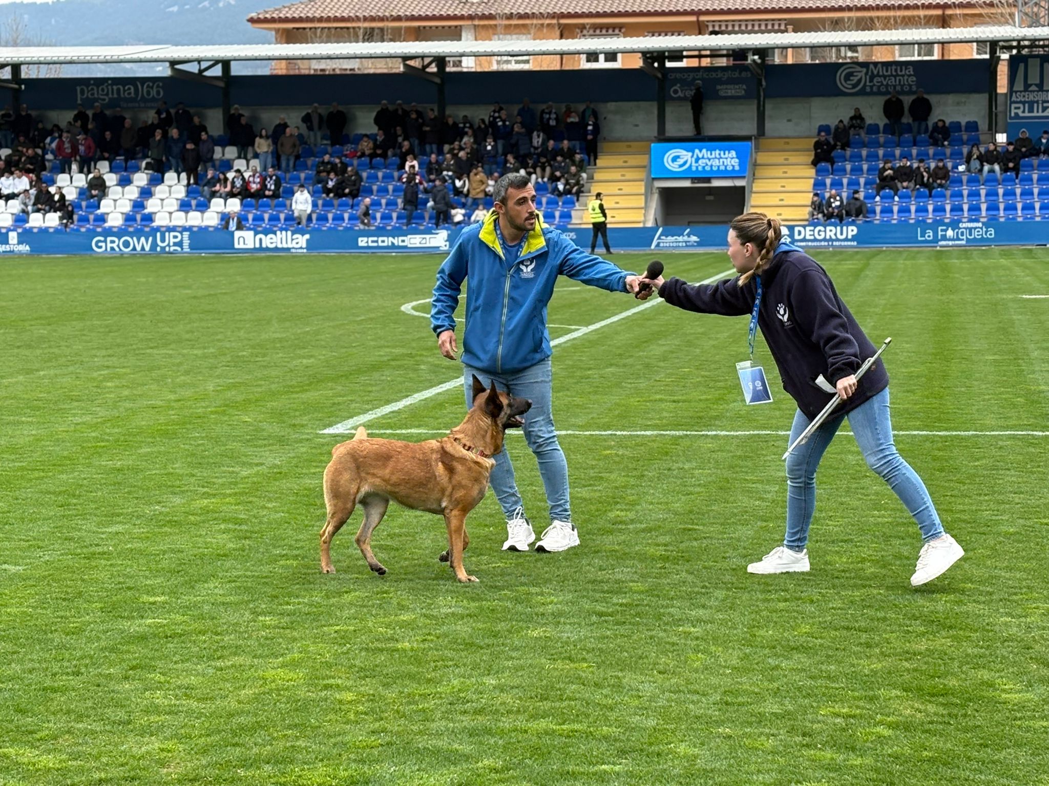 Curiós i estrany el que s’ha viscut a El Collao este diumenge pel que fa als actes socials i a la megafonia. El minut de silenci pel fundador de COMESCO s’ha fet a l’inici del segon temps, amb l’àrbitre encara eixint dels vestidors (el normal és fer-lo abans de començar el partit). I al descans s’ha celebrat una exhibició amb un gos (Aire) que ningú ha entés massa a què venia —tot i que ha resultat entretinguda— i que han hagut d’interrompre al primer exercici perquè s’havien complit els 15 minuts reglamentaris. 'Raro'.