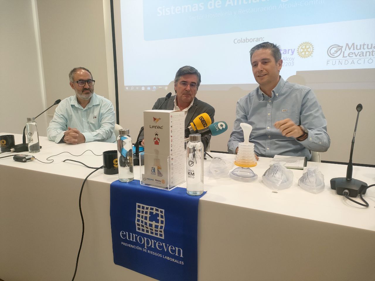 Arran una mort per ofegament en un bar del centre d'Alcoi fa un parell d'anys, s'ha treballat en una via per intentar evitar-los i finalment s'ha decidit implantar este sistema que consta de dos parts. Primer, s'oferirà formació concreta al personal de l'establiment sobre com actuar davant casos d'obstrucció en la gola per menjar. I després, es facilitarà el dispositiu de succió, desenvolupament especialment contra ennuegaments i que consta de tres filtres de diferents mides depenent de l'edat de la persona que s'atén. "No pot utilitzar-lo qualsevol, està condicionat a una formació que serà gratuïta i finançada per Europreven, i feta per personal sanitari. Si no hi ha formació, no distribuirem l'equip" diu Natxo Gómez, qui explica que la primera jornada de formació serà el 14 d'octubre.