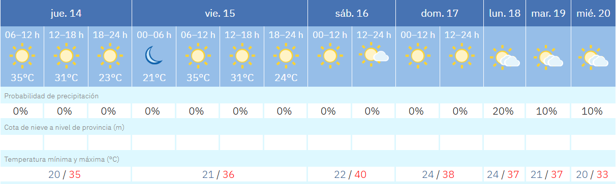 Aquest cap de setmana les nits seran tropicals, és a dir, per damunt del 25 graus i les mínimes se situaran entre els 22 i 24 graus amb unes màximes tòrrices prop o superant els 40.