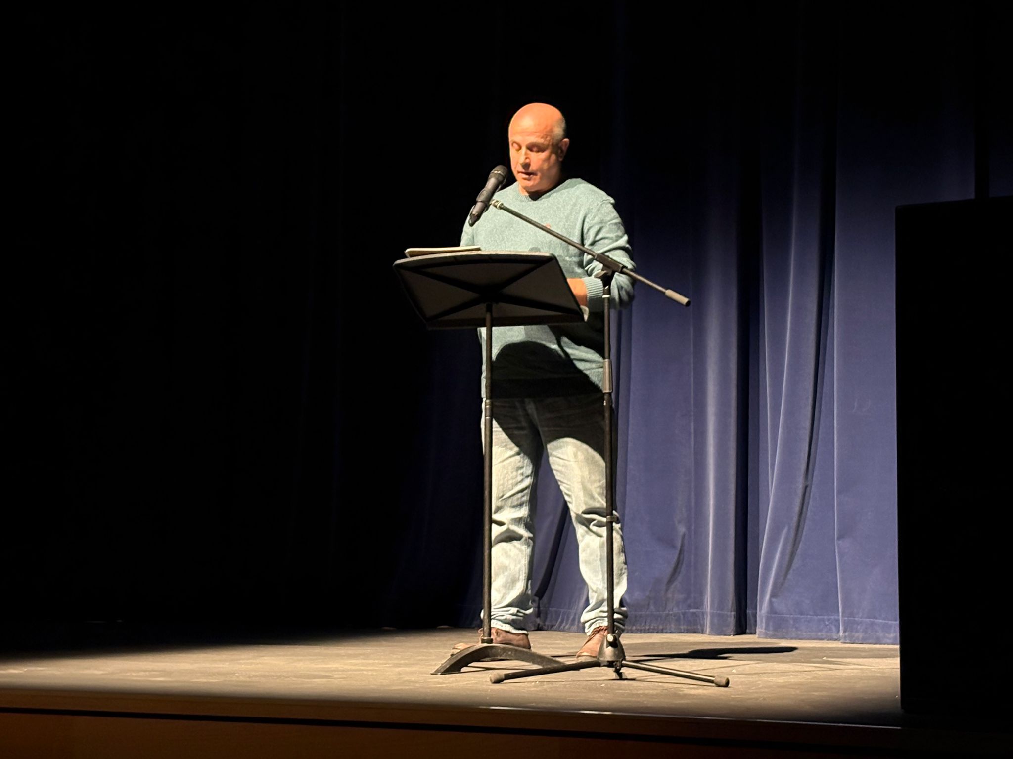 Després de la intervenció de Castillo, l’alcalde Toni Francés i la regidora de Cultura, Elisa Guillem, han fet lliurament dels Premis 9 d’Octubre 2025 a l’historiador Àngel Beneyto i als propietaris del pub L’Escenari, dos referents de la cultura alcoiana.