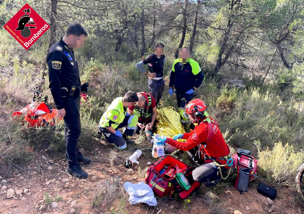 L’helicòpter de rescat i tres bombers d’Ibi han actuat a Banyeres per rescatar un ciclista que havia patit un accident al Bike Park de la Fenasosa.