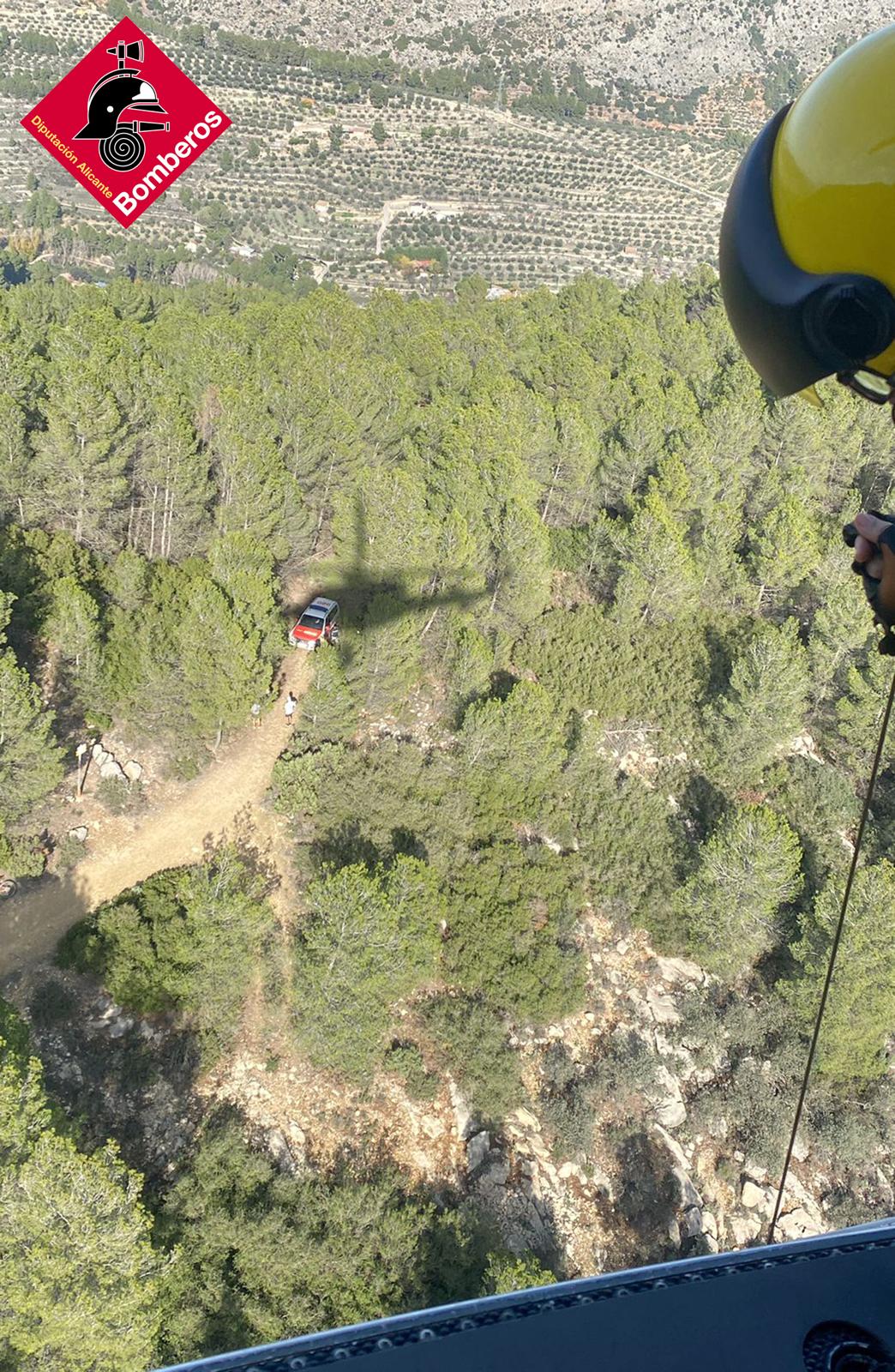 El lloc és de difícil accés i s'ha activat l'helicòpter de rescat. El ciclistra, de 46 anys, ha ingressat en l'Hospital Verge dels Lliris amb policontusions.