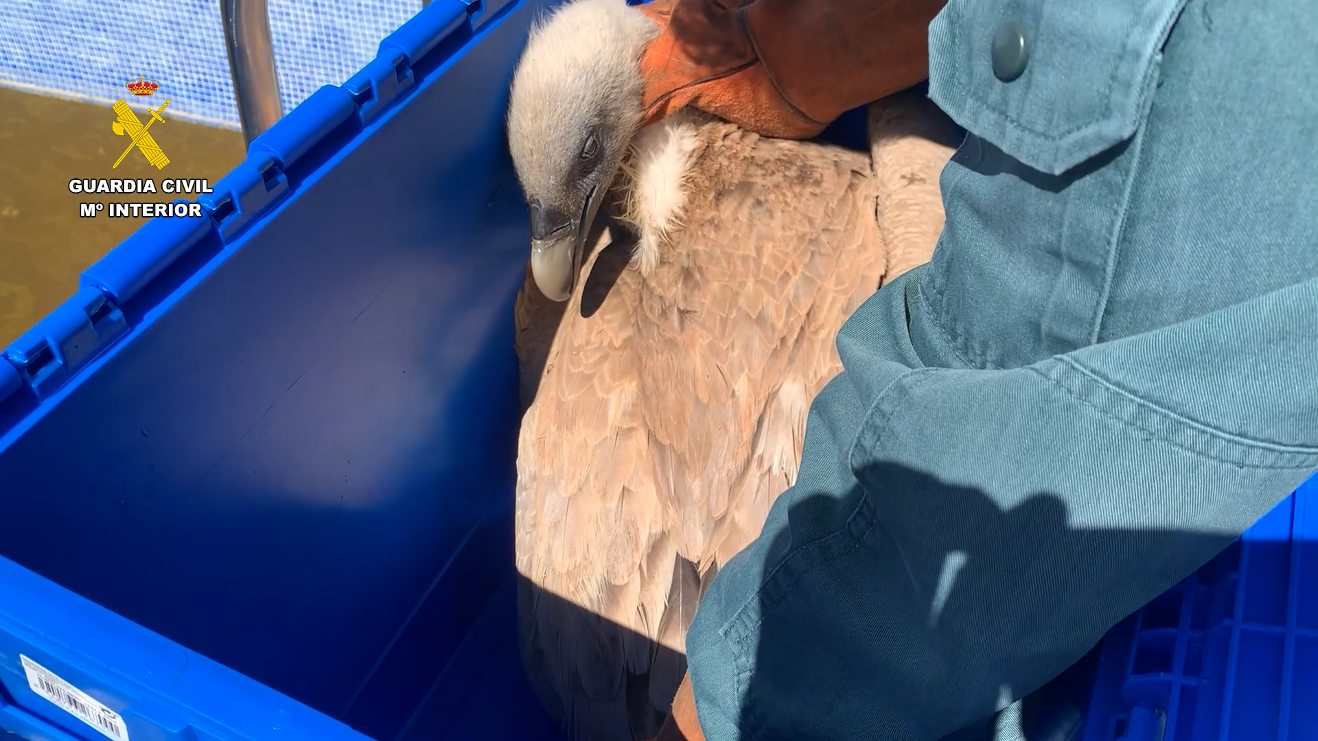 Així que acudeix la patrona del SEPRONA d'Ibi que, amb material de protecció, han rescatat l'animal intentant minimitzar l'estrés i evitant que puga lesionar-se. Els agents expliquen que el voltor, "d'una envergadura notable, es troba aparentment sa, tot i que se sospita que estava en estat de xoc després d'una caiguda accidental mentre sobrevolava la zona".