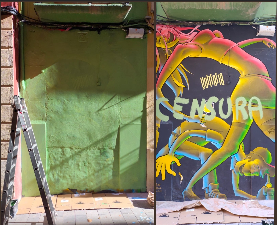 Este és un clar exemple de com la normativa que tenim de vegades no té els resultats esperats, perquè no evita les barrabassades que vol evitar, i entorpeix accions que podrien ser positives. Com ja vos hem contat en Aramultimèdia, el pub Voltereta va encarregar un mural artístic al grafiter Vincent C.V.D. Spek per a decorar la façana del local. Un reclam publicitari i també una solució per a tapar els constants grafits vandàlics que hi havia a la paret. Demanarem permís als propietaris de l'edifici i a la comunitat de veïns, i una vegada fet, els comentaris que rebien eren que agradava i millorava la imatge del carrer.