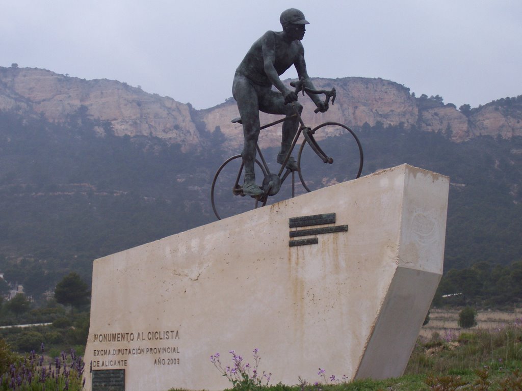 El monument, situat a Castalla, va ser creat en 2003 per l'escultor alacantí Vicente Ferrero Molina, ex-director del Museu de Belles arts d'Alacant del Consell Valencià de Cultura. La mítica peça reflexa a un ciclista i posa en valor el sobreesforç que han d'afrontar per a poder arribar al cim d'aquest enclavament natural que constitueix un dels trams més emblemàtics i tradicionals per als aficionats a aquesta disciplina, a causa de la duresa del seu ascens i la bellesa del seu entorn.
