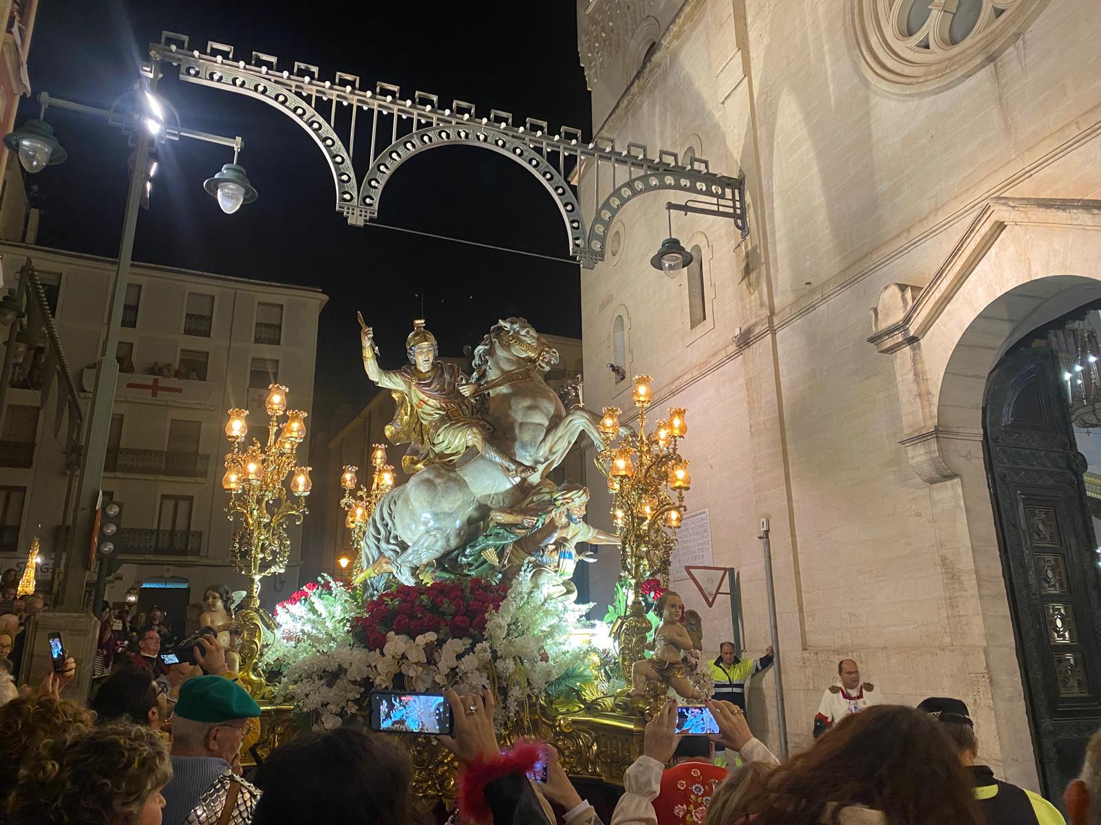 No obstant això, la iconografia alcoiana de Sant Jordi presenta moltes similituds amb la de Sant Jaume Matamoros, patró de Castella, qui apareix representat a cavall en combat contra els musulmans. Segons l'historiador Lluís Vidal, la relació entre tots dos sants és paral·lela des de l'edat mitjana, ja que tots dos són figures vinculades a la conquesta cristiana. Sant Jordi esdevé patró d'Aragó, i la seua llegenda s'associa a la batalla d'Alcoraz al segle XI, mentre que Sant Jaume es vincula a la batalla de Clavijo.