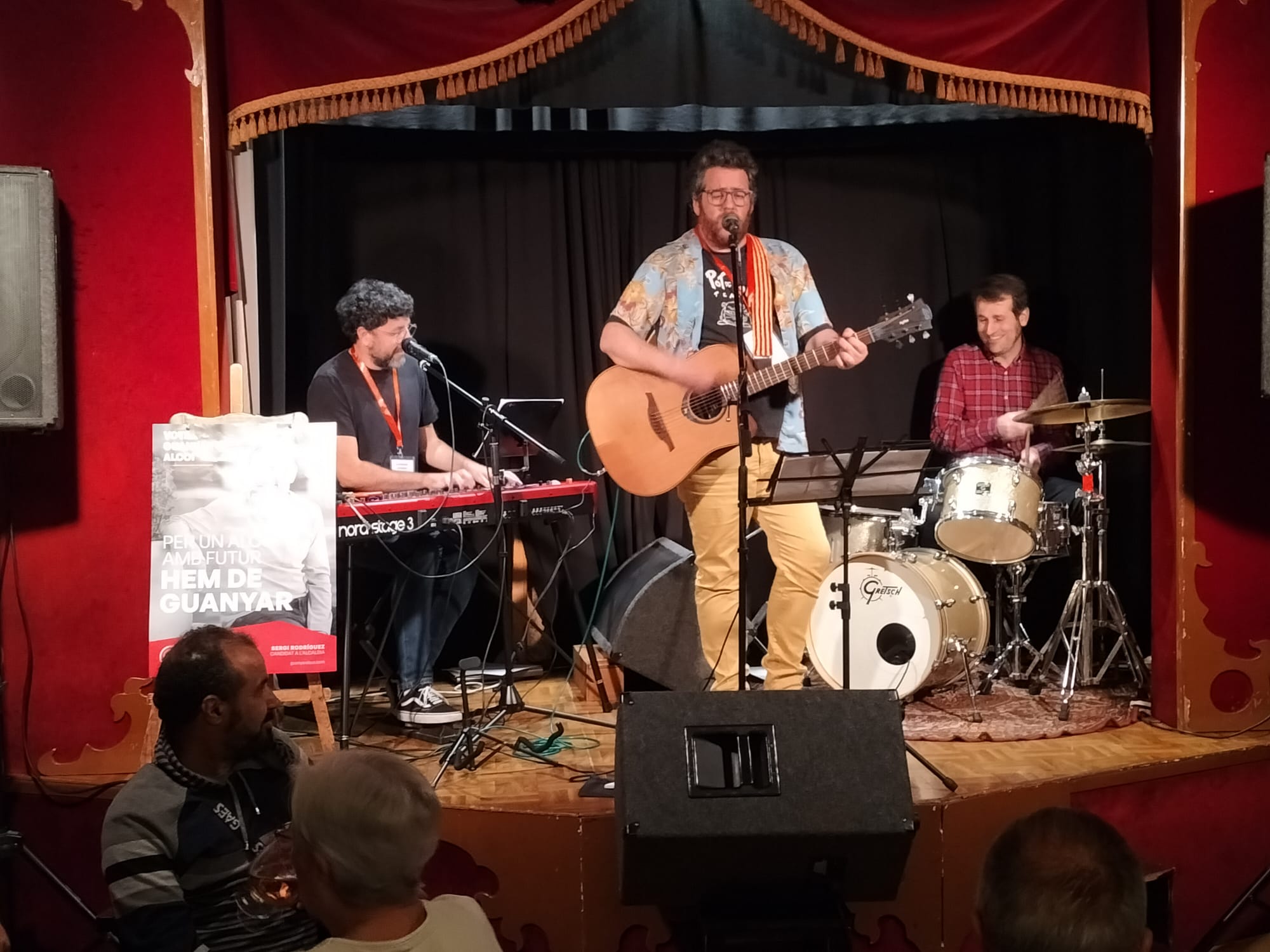 Últims ànims de Sergi Rodríguez i Guanyar Alcoi als seus votants des del Pub L’Escenari. Música reivindicativa i la crida a les urnes han sigut els protagonistes en aquest darrer acte de cloenda de campanya.