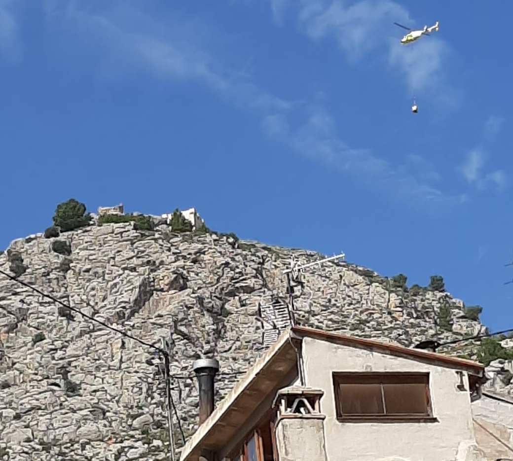 Un helicòpter ha començat a traslladar fins a Sant Cristòfol les pedres necessàries per a reconstruir la torre del castell. És la segona fase d'aquestes obres que preveu recuperar aquesta construcció del segle 15, que servei de defensa al castell.