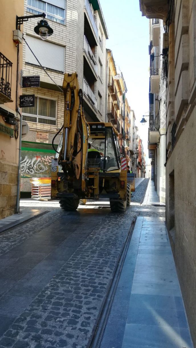 Aquest 18 de maig ja s'han iniciat les obres al carrer de Sant Francesc. Les grues han accedit, s'ha tallat el pas a vehicles, i comencen a llevar-se les llambordes per a crear una plataforma única per a vianants. Les obres, com ja els hem contat des d'Aramultimèdia, compten amb un pressupost de 403.000 euros, i es preveu que estiguen finalitzades en agost.