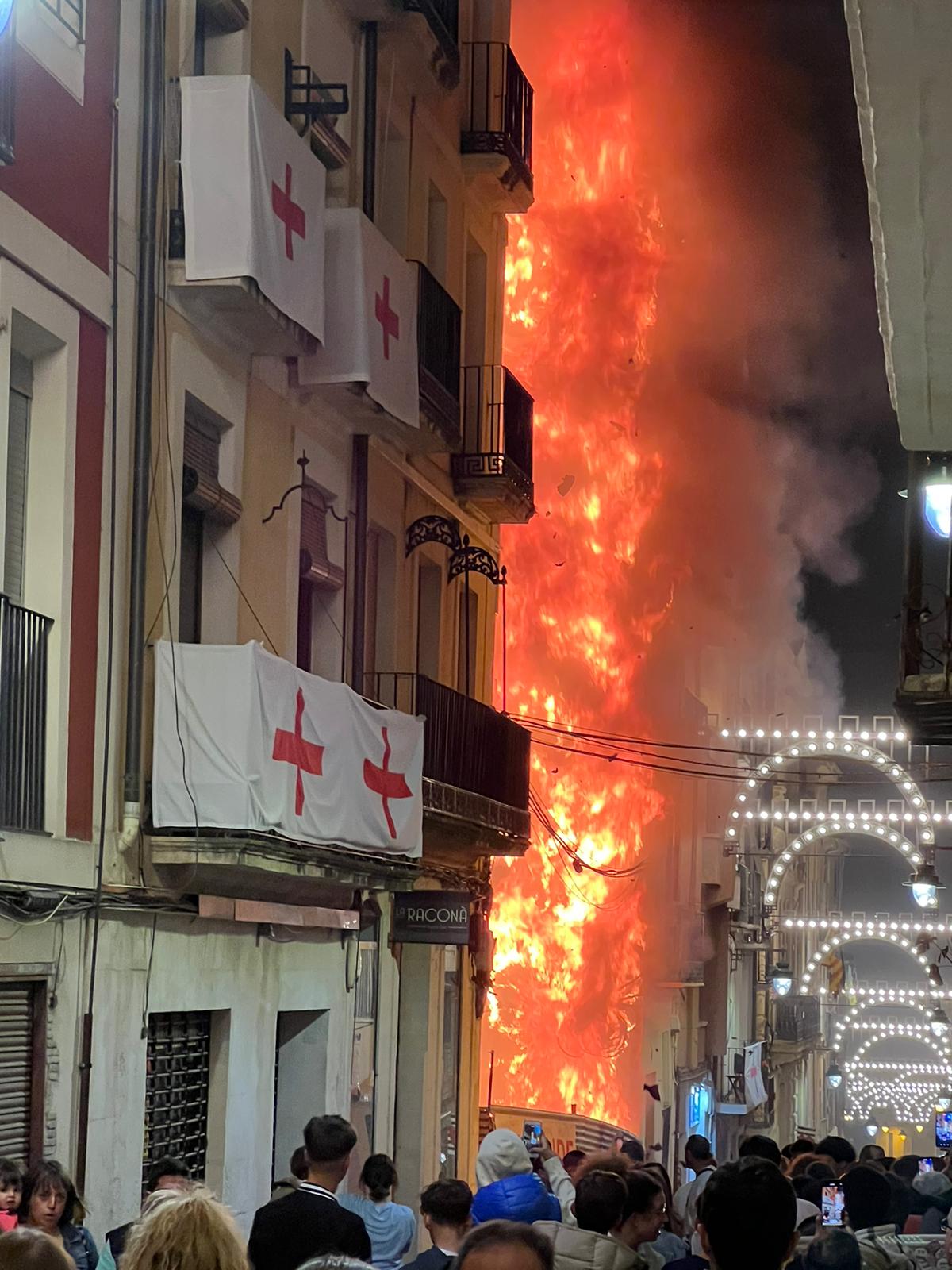 Corre per les xarxes socials com la pólvora del dia dels trons. Sobresalt important el viscut cap a les 22 hores d'aquest 21 d'abril en el carrer Sant Francesc. No se sap encara l'origen del foc, però s'ha cremat amb virulència la façana lateral d'un edifici del carrer Sant Francesc. Per sort, no hi ha hagut ferits.