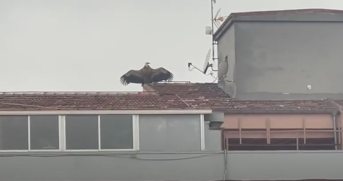 El vídeo, captat per un veí, ha pegat la volta a Alcoi i a la 'contornà'. Un voltor llueix les seues ales sobre el terrat d'un edifici al barri de Santa Rosa d'Alcoi.