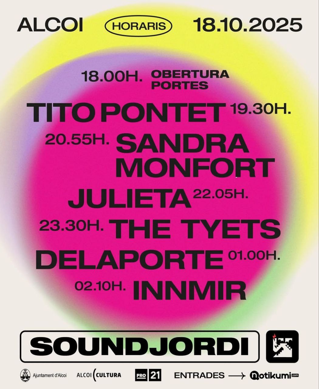 El Sound Jordi es caracteritza per fusionar bandes consolidades amb talent emergent. Així, en el concert d'enguany tindrem a The Tyets, Julieta, Delaporte, Sandra Monfort i INNMIR. Com explica la regidora de cultura Elisa Guillem, també és un espai per a bandes locals, i en l'edició d'enguany tindrem el retorn als escenaris de Tito Pontet.