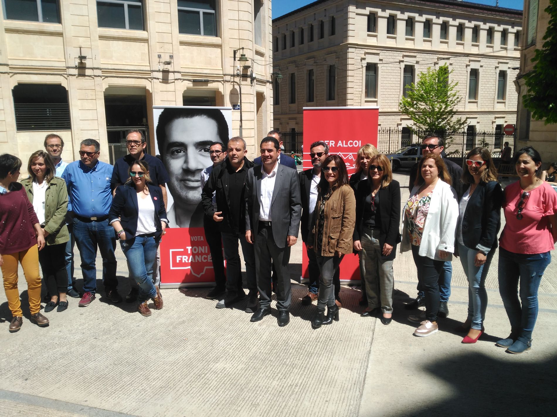 Hores després de l'inici de campanya, i de la tradicional pegada de cartells, l'equip socialista al complet s'ha presentat davant dels mitjans de comunicació en la primera compareixença de la carrera electoral per a les municipals. Francés ha fet palesar la "cohesió i unió" entre els membres de la seua llista, als quals atorga "tota la força per a treballar per Alcoi".