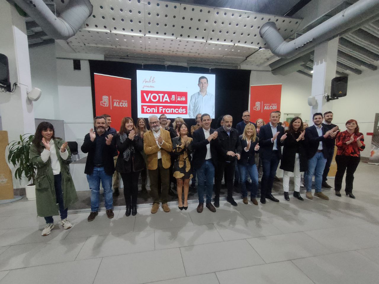 La candidatura al complet dels socialistes s'han reunit a l'Àgora d'Alcoi per a donar per tancada la campanya electoral. Se'ls veia animats i confiats en el resultat de diumenge, i relaxats després de dos setmanes de campanya en què han presentat les diferents propostes del partit. "Tenim el millor equip i un projecte sòlid, realista i ambiciós, molt ambiciós, perquè Alcoi continue progressant i continue sent eixa ciutat líder que dona oportunitats per a totes i per a tots", diu l'alcaldable Toni Francés.