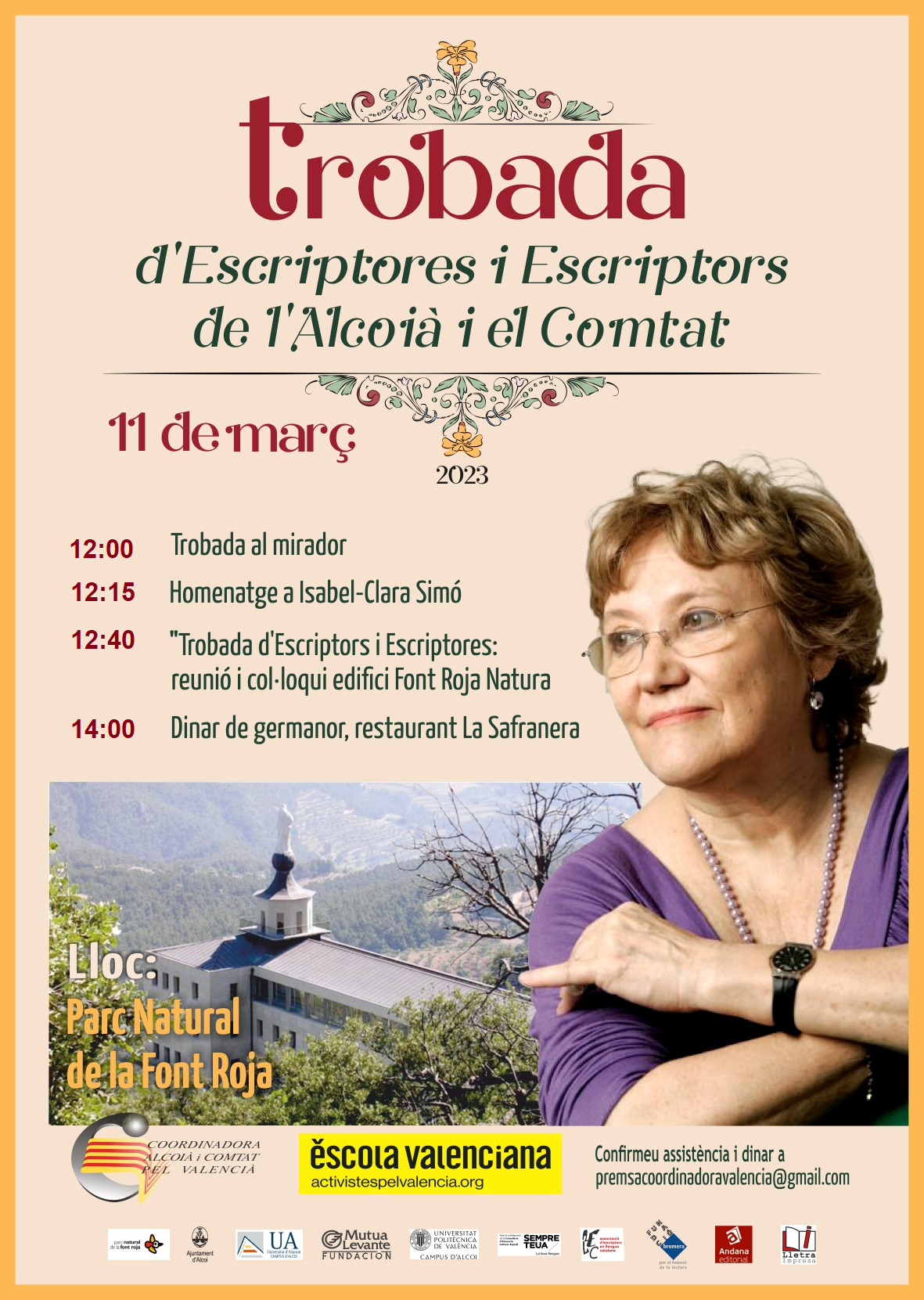 Dissabte 11 de març tindrà lloc la Trobada d'Escriptors de l'Alcoià i el Comtat, a la Font Roja d'Alcoi. A partir de les 12, amb un homenatge a Isabel-Clara Simó i una jornada de convivència. Ens ho explica Francesc Gisbert.