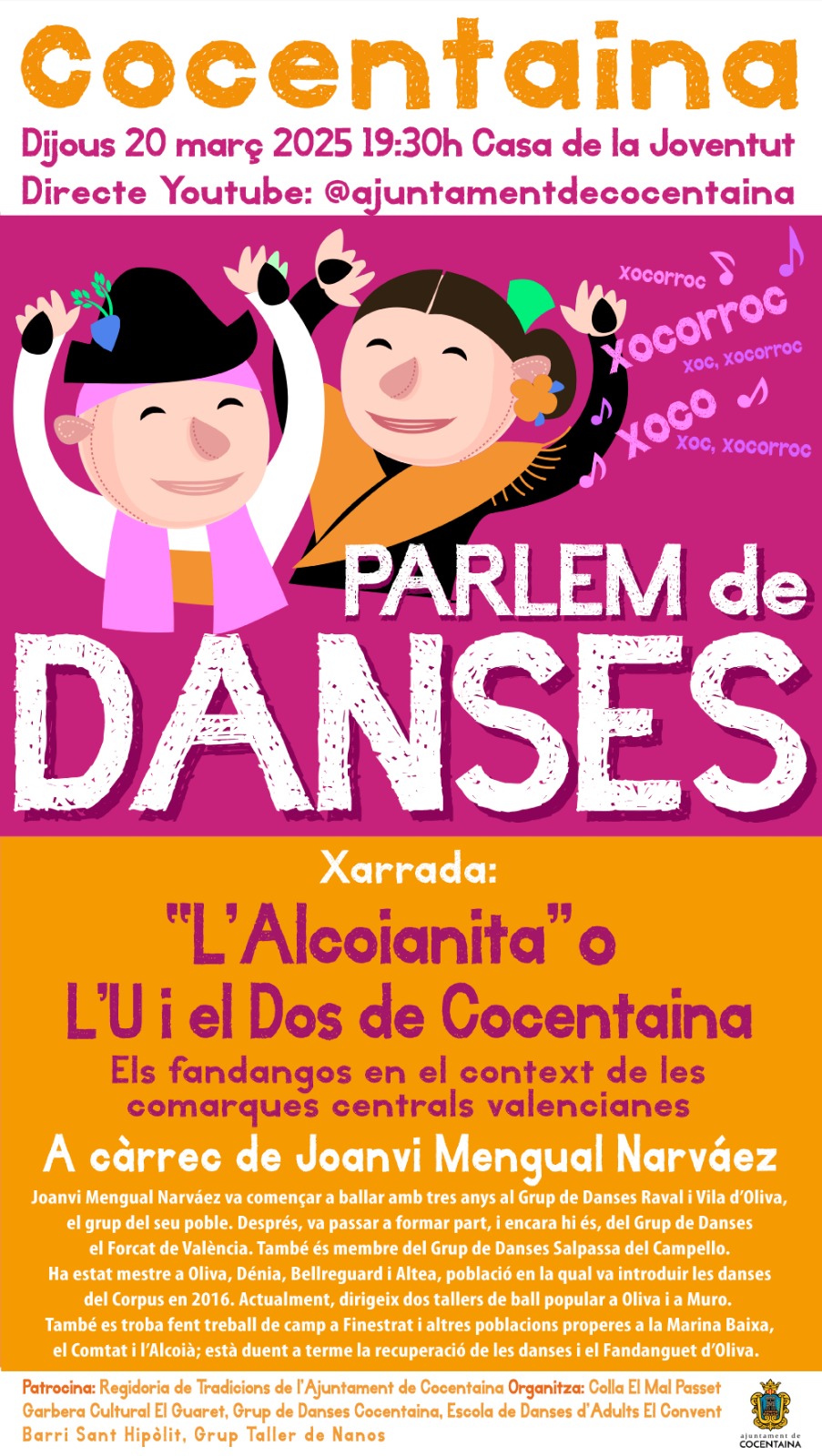 Abans del «dia gran», s’han organitzat dues activitats prèvies, començant per una xarrada el dijous 20 de març a les 19:30 en la Casa de la Joventut sota el títol «Parlem de danses: L’Alcoianita o L’u i el dos de Cocentaina. Els fandangos en el context de les comarques centrals valencianes», a càrrec de Joanvi Mengual, tot un referent de les danses valencianes.