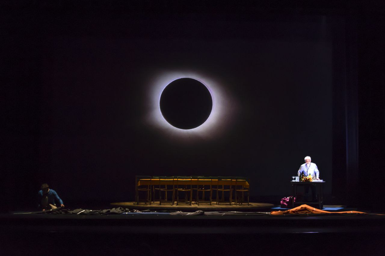 L’obra que el Calderón va acollir aquest dijous a la nit de Mostra no va ser allò esperat. Però perquè el públic tampoc tenia clar què volien transmetre els seus actors, jugava sense cap tipus d’expectativa, encara que el concepte semblava molt interessant, a priori, això és, la mort, l’existència. Eclipsi total és la proposta de Pont Flotant i Rambleta a la fira alcoiana. Eixe és precisament el fenomen que es va donar a l’escenari: sensació difusa, d’allò que s’ennuvola i no treu res en clar, interessant en una sensació fugaç, fins que s’apaga. En aquest cas, l’atenció per part del públic que, tot i que em sap greu dir-ho, està en el seu dret de sentir-se una mica decebut. Perquè hi havia una preparació de molts personatges, però no del tot, per la projecció, perquè, considerem, no van arribar a tocar l’ànima de la gent, al menys, la nostra. Un exemple de teatre bastant arriscat i experimental no és sinònim de tot val, o sí? Què en penseu?