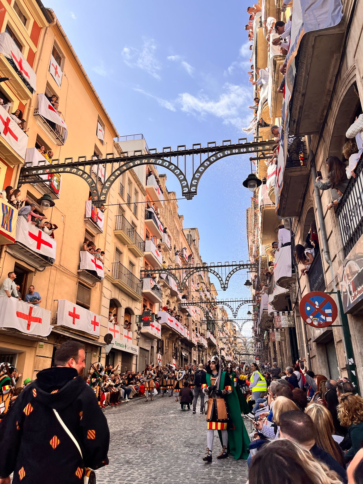 Els carrers i balcons estan de gom a gom en aquest matí de calor, després d'une spoques gotes caigudes aquest matí a la Diana.