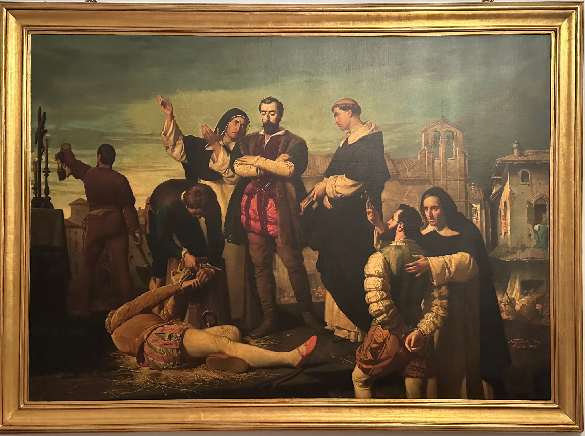 La pintura de l'alcoià Navarrete y Fos (1834-1909), deixeble de l’Acadèmia de Sant Carles i de l’Escola de San Fernando, és una reproducció fidel del famós llenç d’Antonio Gisbert conservat al Congrés dels Diputats. Es troba en molt bon estat i serà sotmesa a una neteja per eliminar vernissos oxidats, reforçant així la col·lecció de pintura alcoiana del segle XIX.