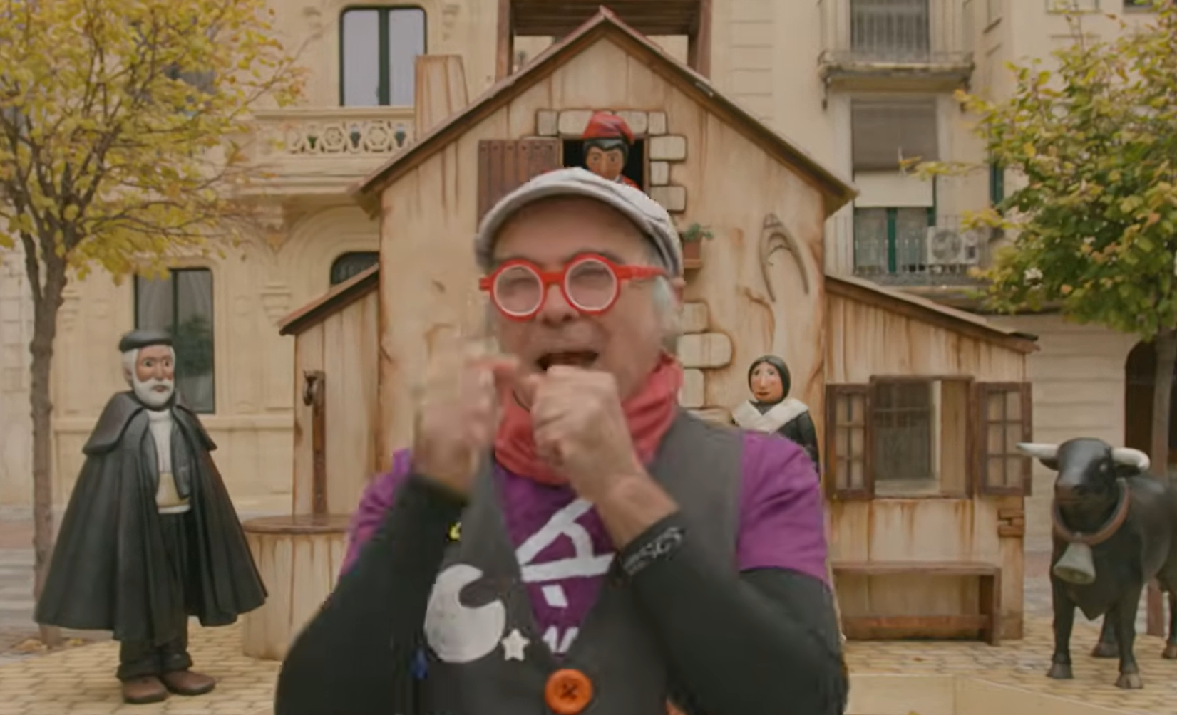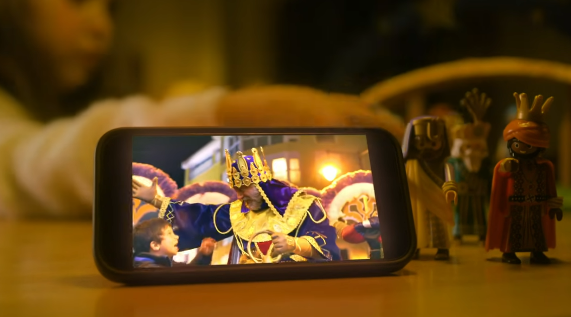 Dani Miquel col·labora cantant davant de l'estatua de Tirisiti mentre una xiqueta escriu la carta a Ses Majestats amb imatges de l'Ambaixador i els Reis Mags a un móbil que l'acompanya junt a un Betlem de Playmobil.