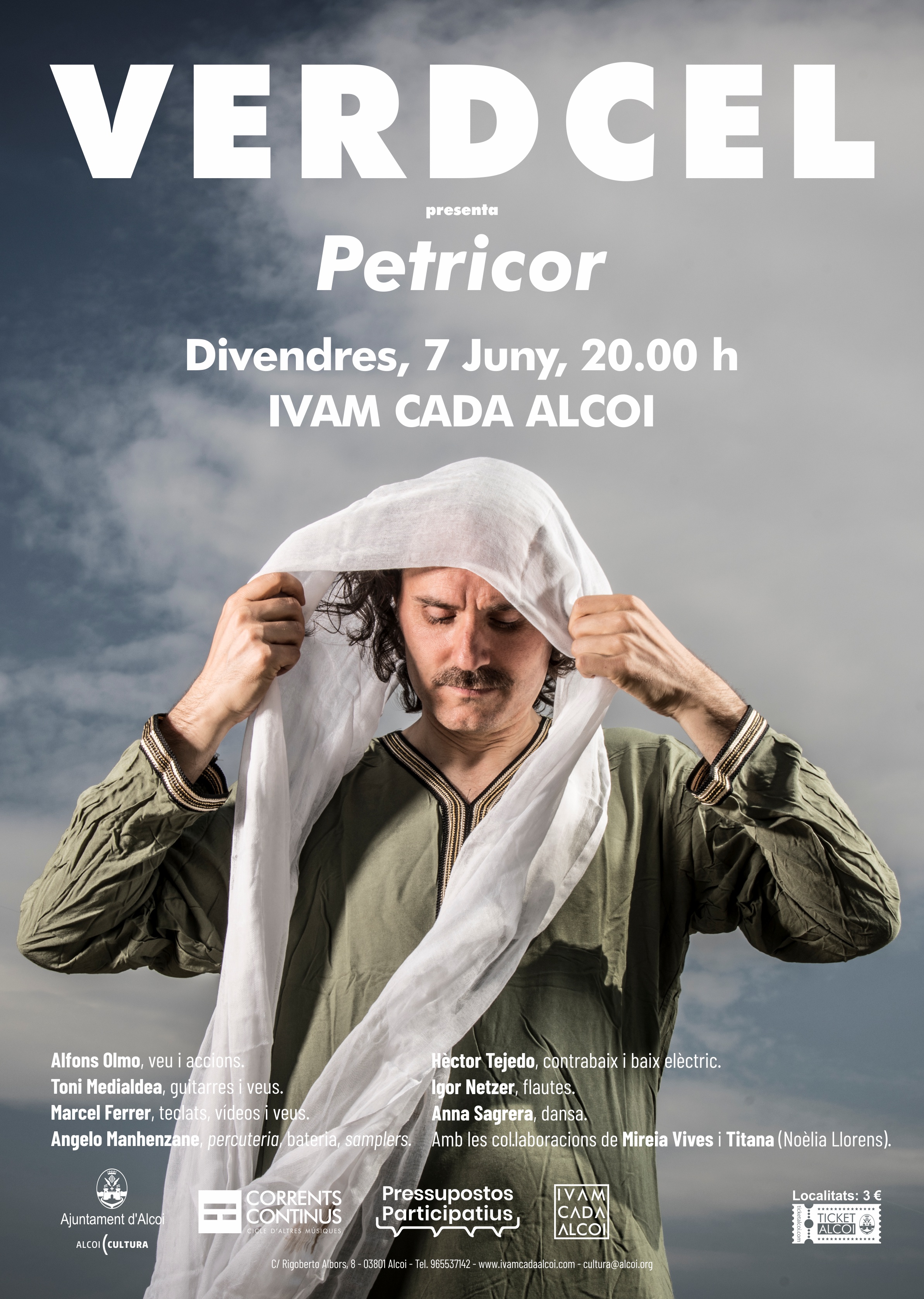 El divendres 7 de juny a les 20 hores, l’IVAM CADA d’Alcoi acollirà a VerdCel (nom sota el qual s’amaga Alfons Olmo) i el seu nou llibre-disc, “Petricor”, el desé de la seua carrera, el qual s’allunya del pop-rock i marca un punt d’inflexió en la seua carrera. A més a més, cal destacar la col·laboració en aquest disc de grans cantants del panorama actual com Noèlia Llorens “Titana”, Mireia Vives o La Maria.