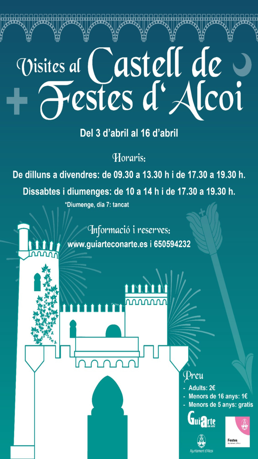 Del 3 al 16 d’abril, el Castell de Festes podrà visitar-se de nou, com cada any des de 2014. No estarà obert el 7 d’abril, dia de La Glòria Infantil.