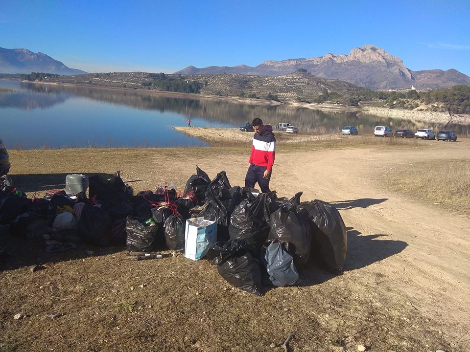 Un grup de voluntaris recull més de mitja tona de deixalles al pantà de Beniarrés