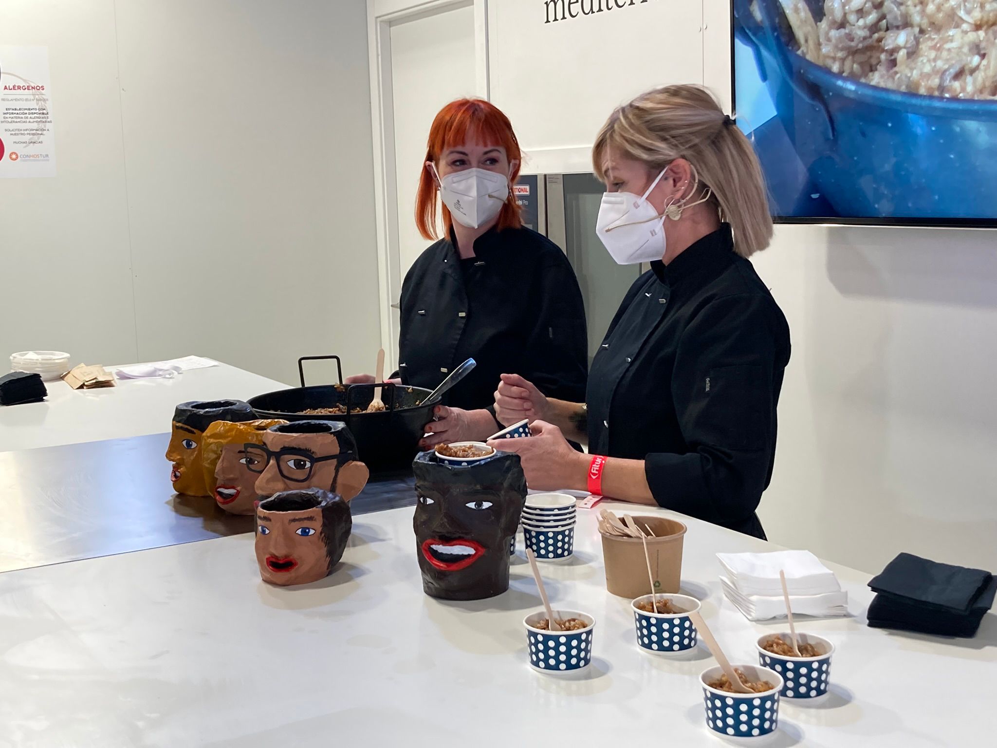 Torró i més torró. És la pedra angular sobre la qual gira el turisme xixonenc ara i sempre. I per suposat en la Fira FITUR. En aquesta edició, les cuineres de més que conegut Restaurant L'Entrepà han cuinat i han donat a tastar un guis d'arròs amb carrilera de porc i torró. Una meravella gastronòmica que ha triomfat i ha obert els ulls als visitants, que han comprovat amb la seua pròpia cullera, les coses que es poden crear amb aquest dolç universal.