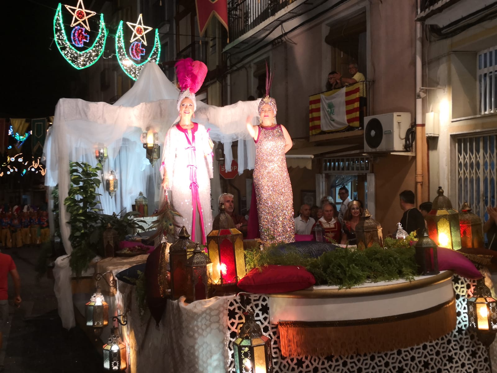 Pel que fa als moros, desfilaren amb celeritat, tot i que al tram final es va registrar un xicotet tall. Els moros grocs representaren amb èxit la capitania. Esquadres espectaculars, una d'elles amb 'cap batidor' . Ballet suggeridor i una ballarina que caminava sobre el foc. Una espectacular carrossa ornamentada amb teles àrabs tancaven l'entrada amb les capitanes: Mercedes Soler i Rocío Garcia.