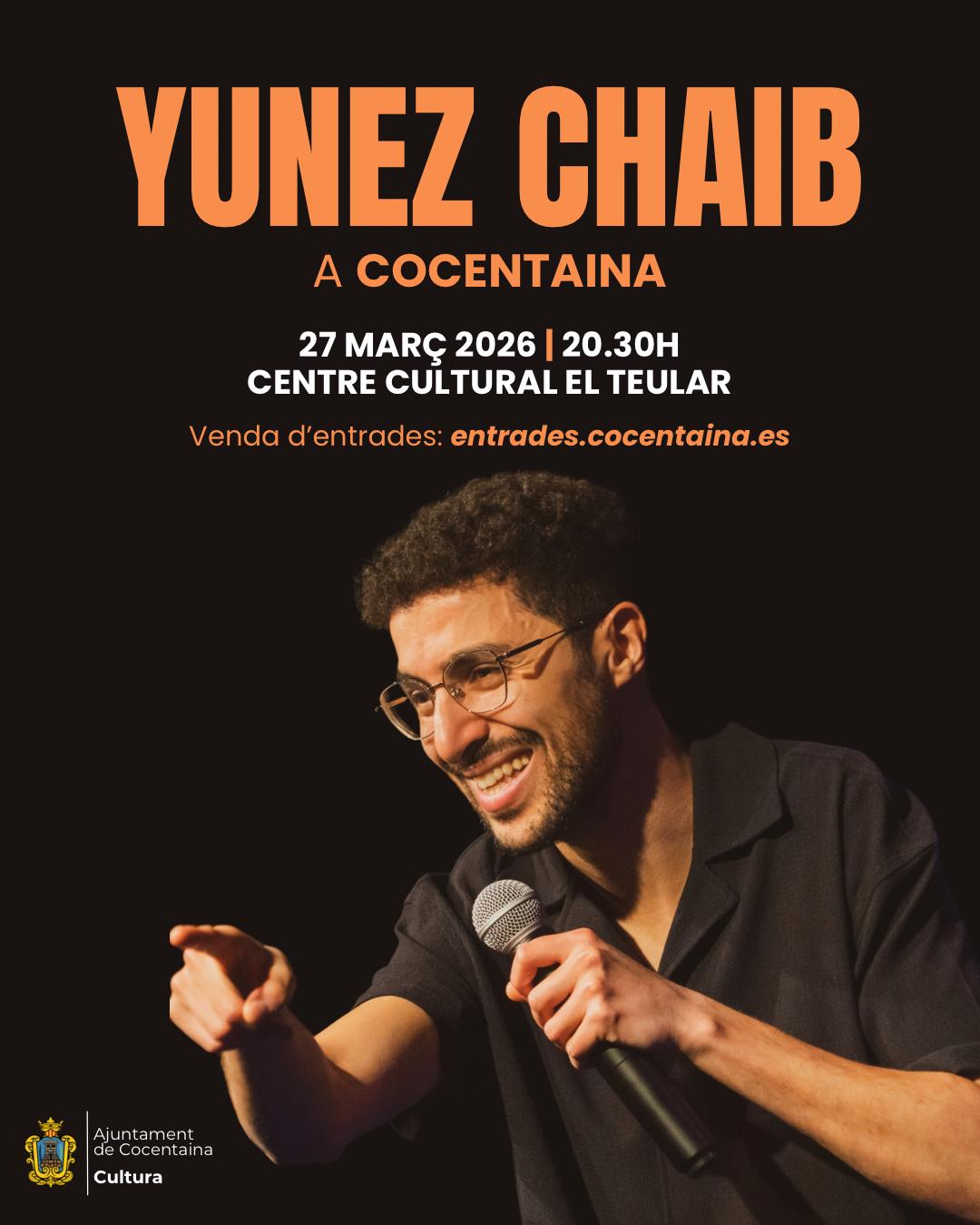 El Centre Cultural El Teular de Cocentaina acull el divendres 27 de març, a les 20.30 hores, l’espectacle de Yunez Chaib, conegut pel gran públic com a col·laborador del programa “La Revuelta”. Una proposta d’humor irreverent, intel·ligent i compromés, que convida el públic a riure però també a reflexionar sobre la realitat social actual.
